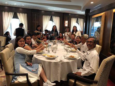 Hành khách chụp ảnh lưu niệm khi ăn tối cùng mọi người trong đoàn